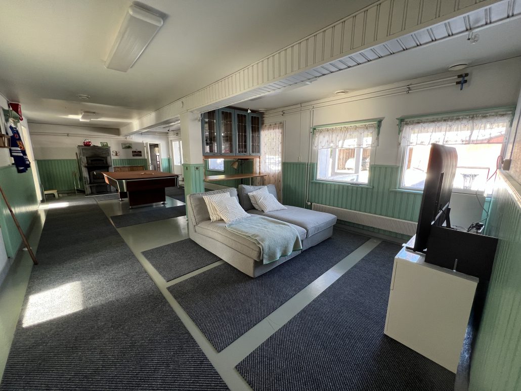 Tila: Kaksikerroksinen rakennus, jossa yläkerrassa yksi yhtenäinen tila. Alakerrassa 2 hengen huone ja yläkerrassa sängyt kahdelle. Yläkerran tila on suuri ja sinne voi patjoilla (löytyy talosta valmiina) majoittua neljä henkilöä lisää. Tilapäisesti majoittumaan mahtuu omin esim. retkipatjojen avulla isompikin porukka. Alakerrassa on 2 wc:tä, keittiö (liesi, uuni, jääkaappi, astianpesukone, kahvinkeitin, mikro, leivänpaahdin, ruoanvalmistus välineet + astiat). Ilmastoitu.